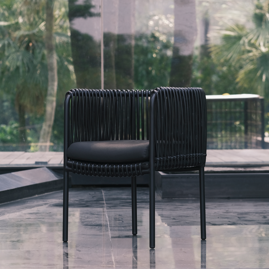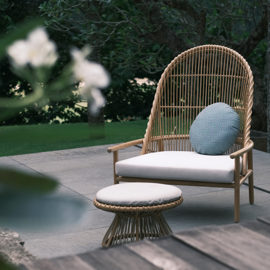 Inspired by the Indonesian “Bird of Paradise” from Papua Island, the beauty of Cendrawasih’s feather and its graceful movements resonate through form in this collection. The organic form and solid structure of the powder-coated metal mixed with durable outdoor rope and fabrics combined, give this chair a sense of harmony and grace. see full collection > |